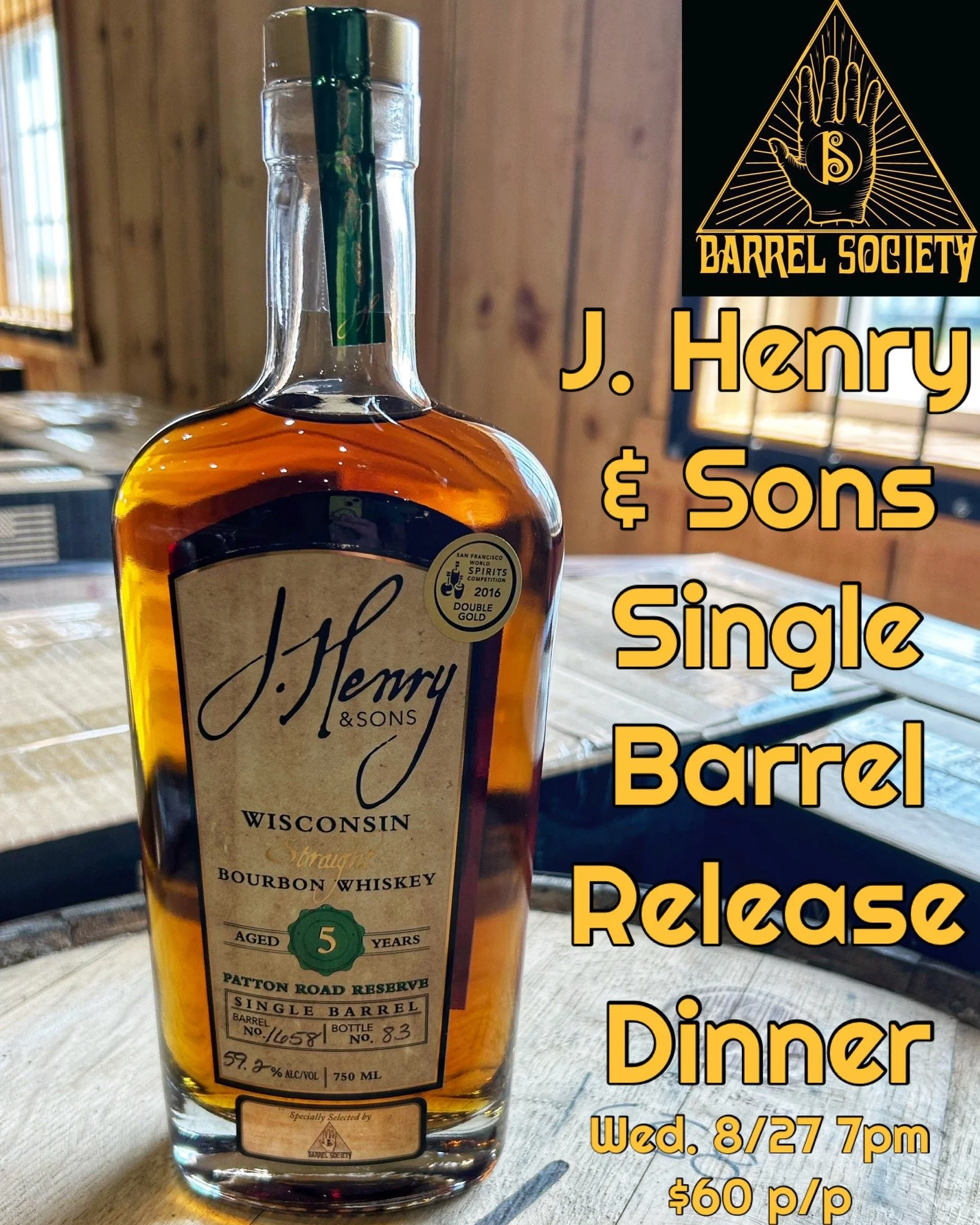 On Wednesday August 27th we release our highly anticipated “Gunsmoke” Single Barrel Bourbon from J. Henry & Sons! Our great friends at Thyme Craft Kitchen, who selected this barrel with us, have curated an exclusive dinner to celebrate the release of this one-of-a-kind bourbon here at Barrel Society! This meal will also be paired with five J Henry drams, including our very own “Gunsmoke” single barrel!