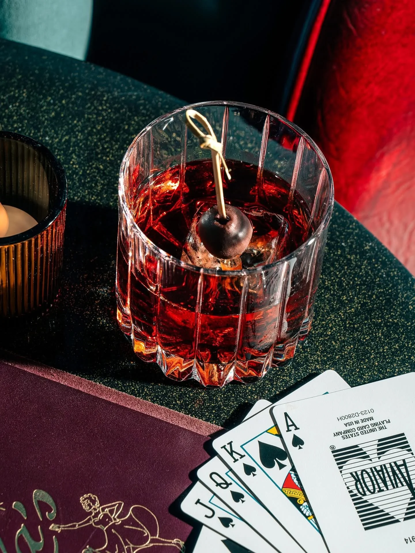 BON BON JOVI (pictured): J. Henry 5-year bourbon, campari, averna amaro, chocolate amerena cherry